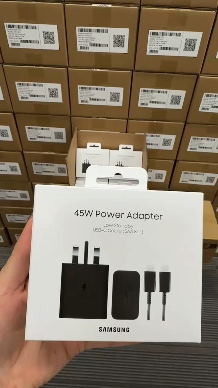شارژر 100% اصلی 45W شرکتی سامسونگ 3 پین به همراه کابل و با گارانتی تعویض
